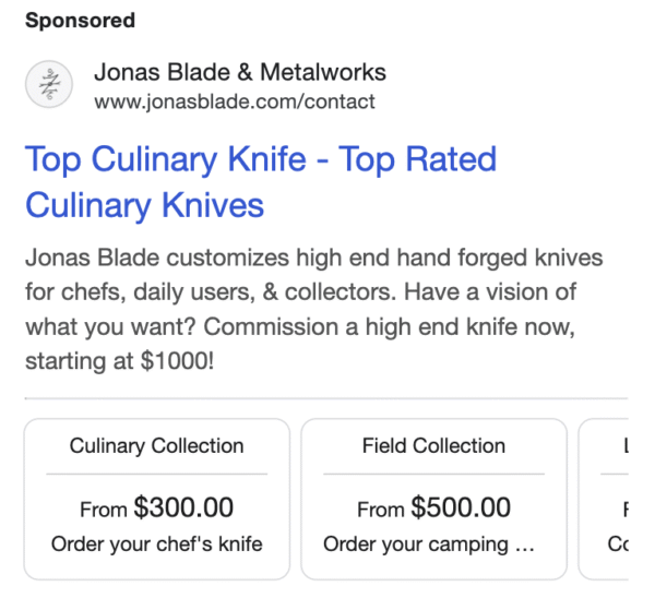 As of August 2024, PPC was agreed upon with Jonas Blade as an additional Marketing service to SEO. The goal for Jonas Blades‘ PPC Campaigns is to acquire paid leads from Google Ads to complement the organic leads from SEO. If at least 1 monthly lead were to be averaged, this would be considered a success.