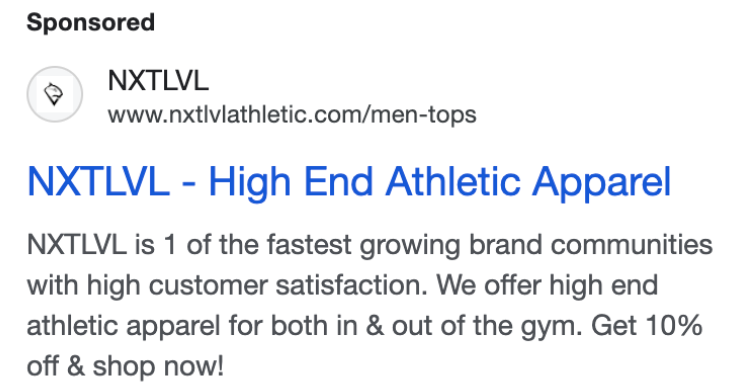 Now for a hypothetical example of what a Google Ad for NXTLVL could look like: