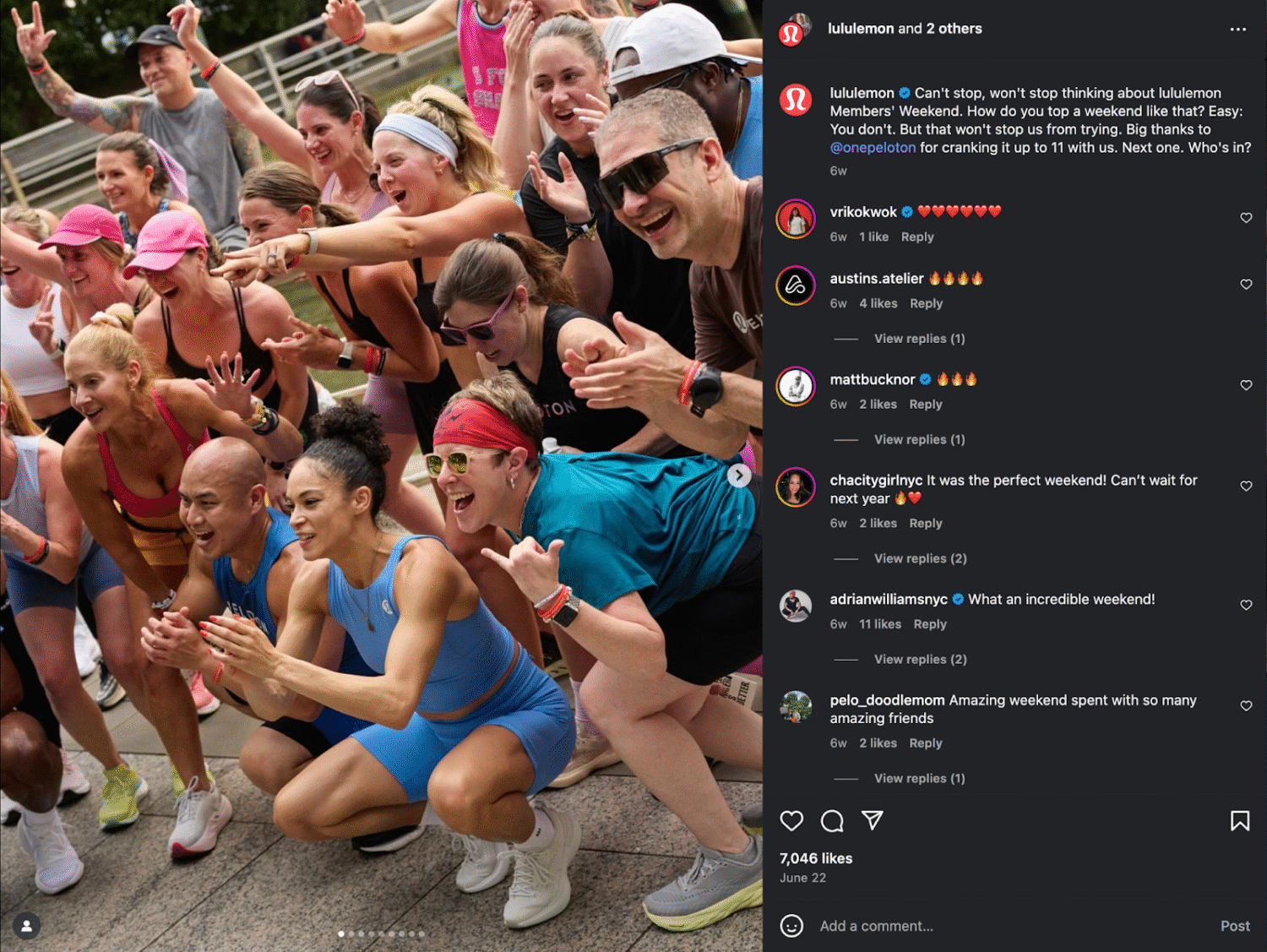 Lululemon owns the premium yoga and wellness space. It’s not just about leggings—it’s about living a life of mindfulness, balance, and community. Their stores feel more like studios, and their content often centers around personal growth and healthy living.